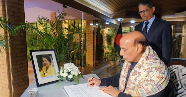 বৃহস্পতিবার (১ জানুয়ারি) দুপুরে দিল্লিতে অবস্থিত বাংলাদেশ হাইকমিশনে গিয়ে খালেদা জিয়ার প্রতি শেষ শ্রদ্ধা জানান ভারতের প্রতিরক্ষামন্ত্রী। এ সময় তিনি বাংলাদেশ মিশনে সংরক্ষিত শোক বইতে একটি বার্তা লেখেন।