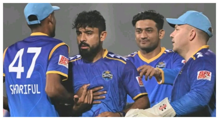 জবাবে ব্যাট করতে নেমে শুরু থেকেই চাপের মধ্যে পড়ে সিলেট টাইটান্স।